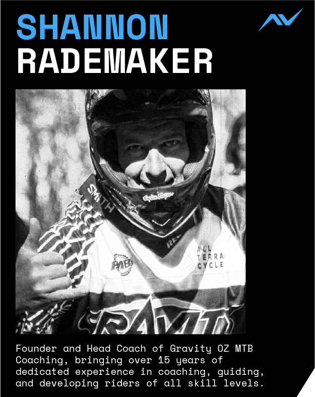 Shannon Rademaker is the Founder and Head Coach of Gravity OZ MTB Coaching, bringing over 15 years of dedicated experience in coaching, guiding, and developing riders of all skill levels. His expertise spans across a wide spectrum of the mountain biking world, from grassroots instruction to elite-level athlete development.